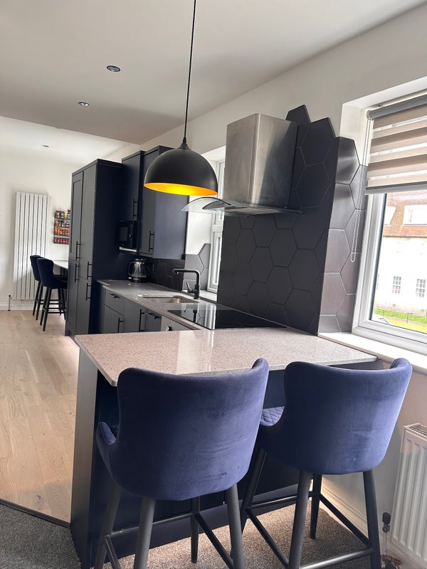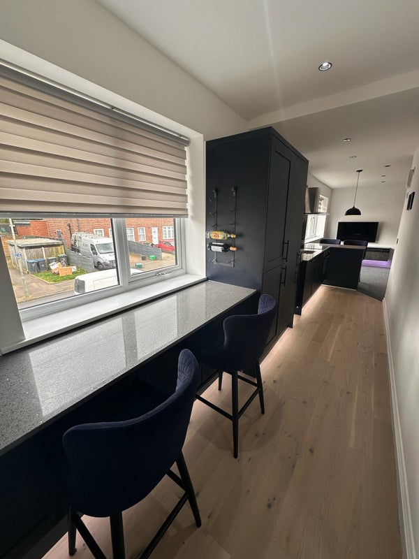 There is a new kitchen and new bathroom with your own en-suite, washing machine and boiler. The room is offered fully furnished with your own iron, ironing board and utility cupboard for cleaning products. The entire flat is newly refurbished, with new carpets, flooring and banisters throughout.