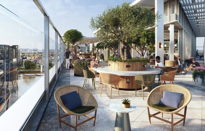 Roof terrace with skyline views, plus pool/ping pong tables and social rooms
