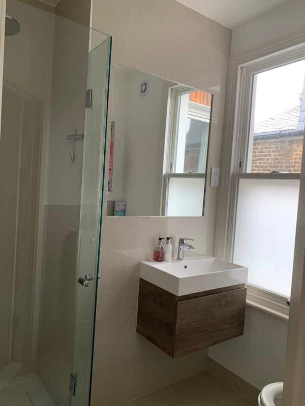 We are a late-30s couple with two small children (aged 4 and 6 years). The house is three storey so you would have your own space on the top floor and a bathroom that would be yours exclusively. We have a large open plan kitchen / living room (you would get your own cupboard space) and a separate sitting room.