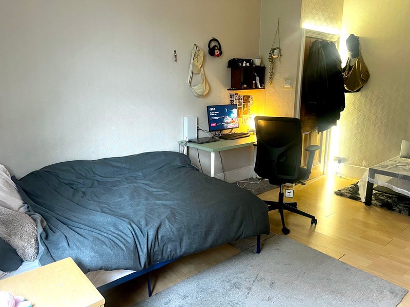 Reasonably priced and well lit furnished double room available now. Lots of storage space.