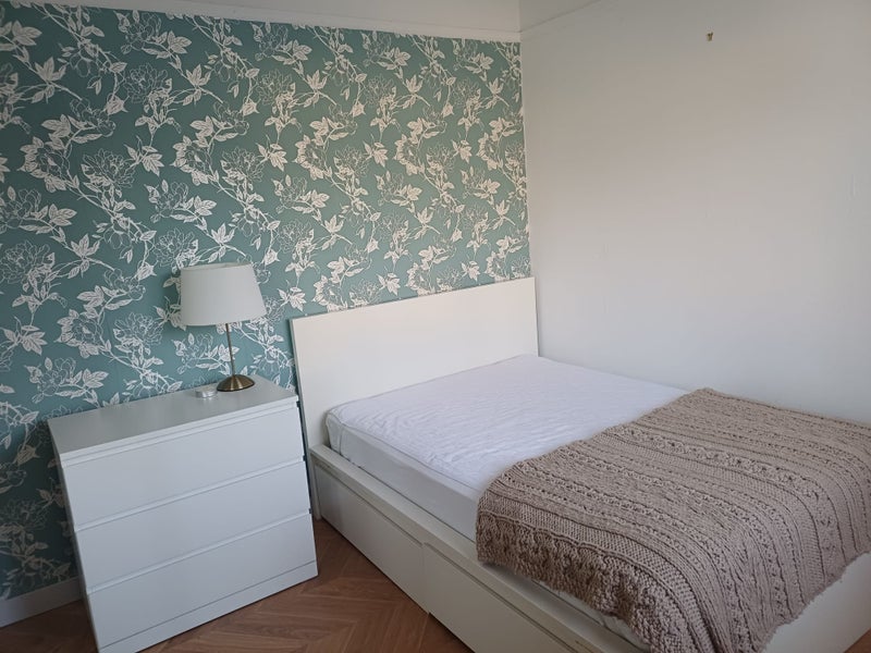 - Ample storage: large wardrobe + chest of drawers