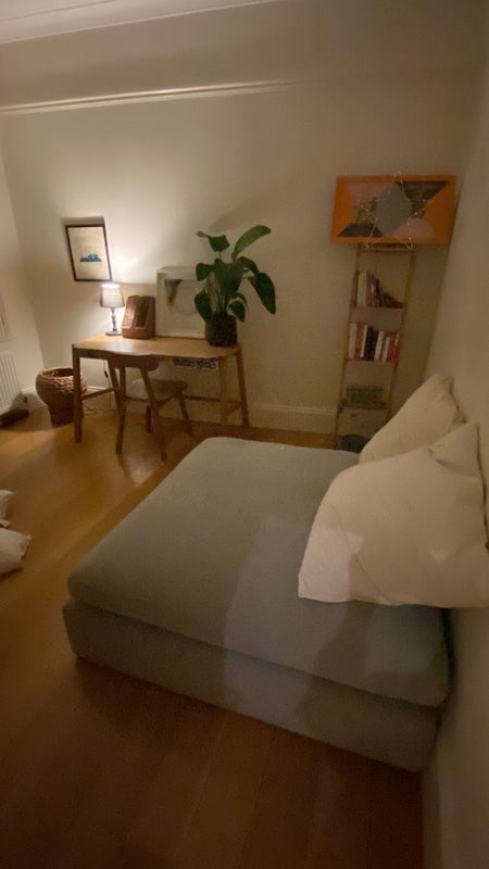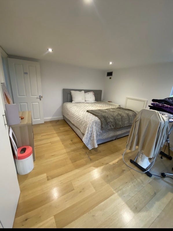 Large top room with air con for summer heat. Wood floors throughout in a lovely home of clean and considerate house mates. Two double door built in wardrobes.