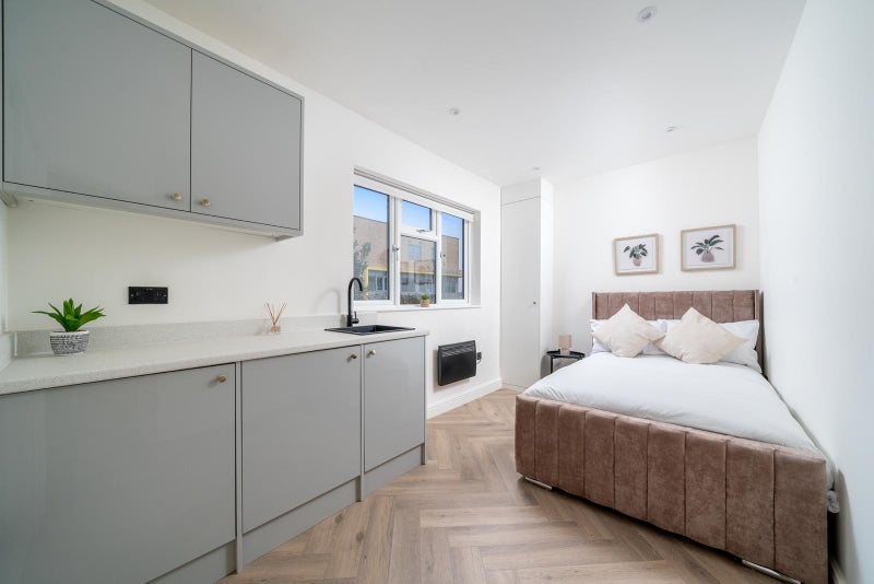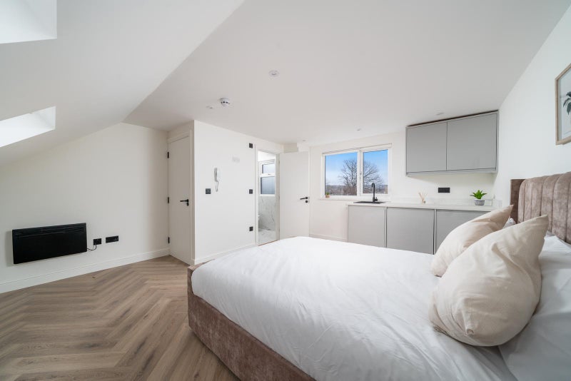 Each studio benefits from a well-designed open-plan layout, incorporating a contemporary fitted kitchenette, living/sleeping area, and a private shower room. Bright and spacious, with quality fixtures and fittings throughout.