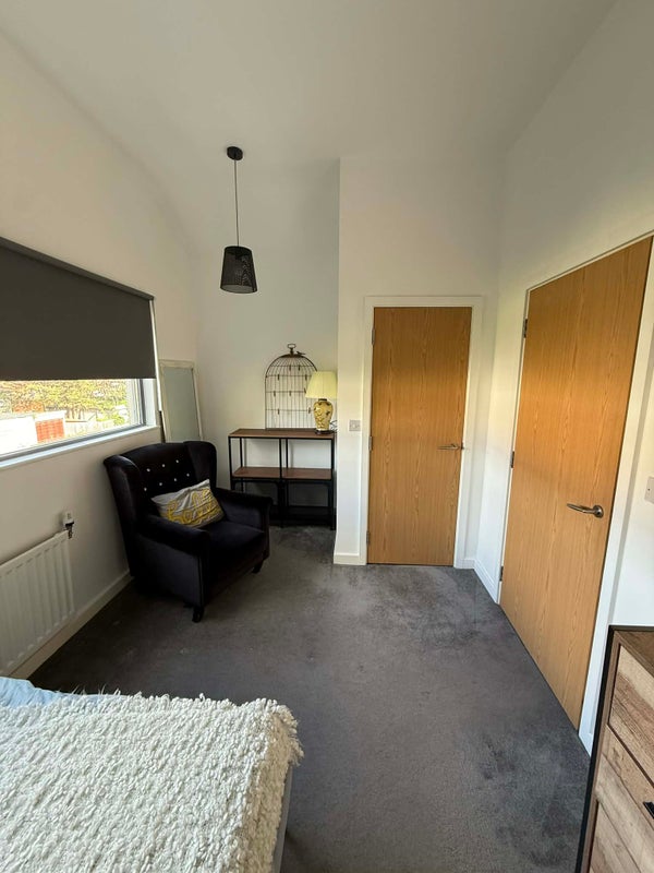 The bedroom is fully furnished with a double bed, double wardrobe, bedside table, chest of drawers and storage compartment offering plenty of space (desk and office chair also available if you'd like)