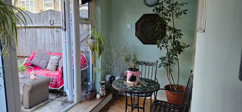 Bright airy double bedroom with double bed, wardrobe. chest of drawers. Kettle and toaster in room but kitchen access available if needed. Bathroom with bath and separate shower only shared with 1 other ie. ME. all bills including internet, electric council tax included. I have a small friendly dog and cat. Use of conservatory and garden allowed with smoking allowed in the garden or outside. Only 5 min walk to buses overground and trains into Central London. No guests allowed. No tv in room but you may bring your own. 2 WEEK TRIAL PERIOD TO SEE IF WE GET ON OTHERWISE YOU WILL BE GIVEN 1-2 WEEKS TO FIND ALTERNATIVE ACCOMODATION. I am friendly and easy going as long as we respect each others space. Must be clean and tidy in all communal areas