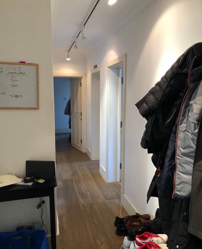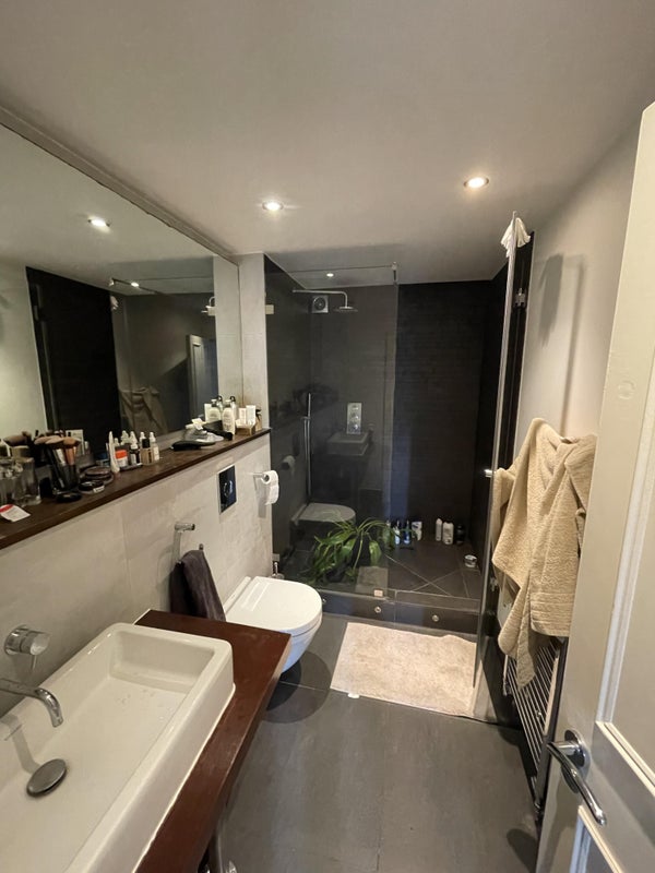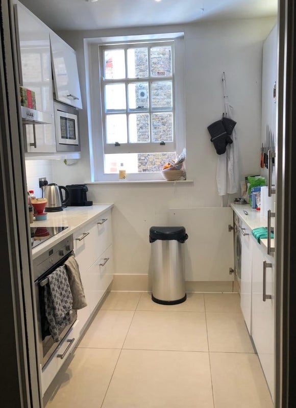 The flat is on the second floor. It has a new washer/dryer unit and dishwasher. It's a really generously proportioned place, just under 1000 Sqft shared between two people.
