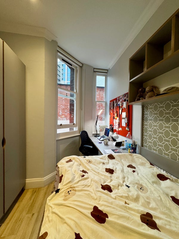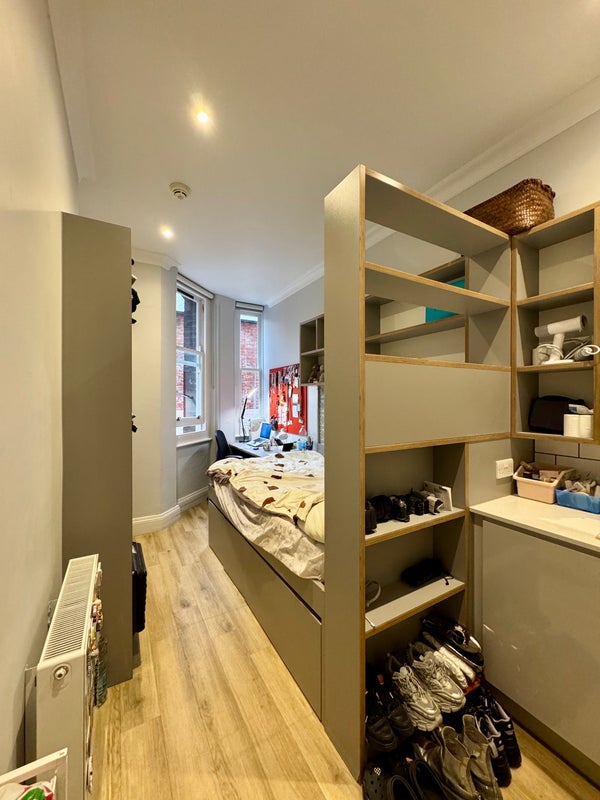 ⭐️The room is equipped with a sink and a dressing mirror, with good lighting and ample storage space (you can search for the 3D room layout on Google Maps). The bathroom is shared by two people, and the kitchen is shared on the floor. It is equipped with a toaster, a microwave oven, a blender, and two separate cabinets (occupying excellent positions for the refrigerator and cabinets). The apartment is highly secure, with a 24-hour front desk, a movie room, a study room, and a laundry room.