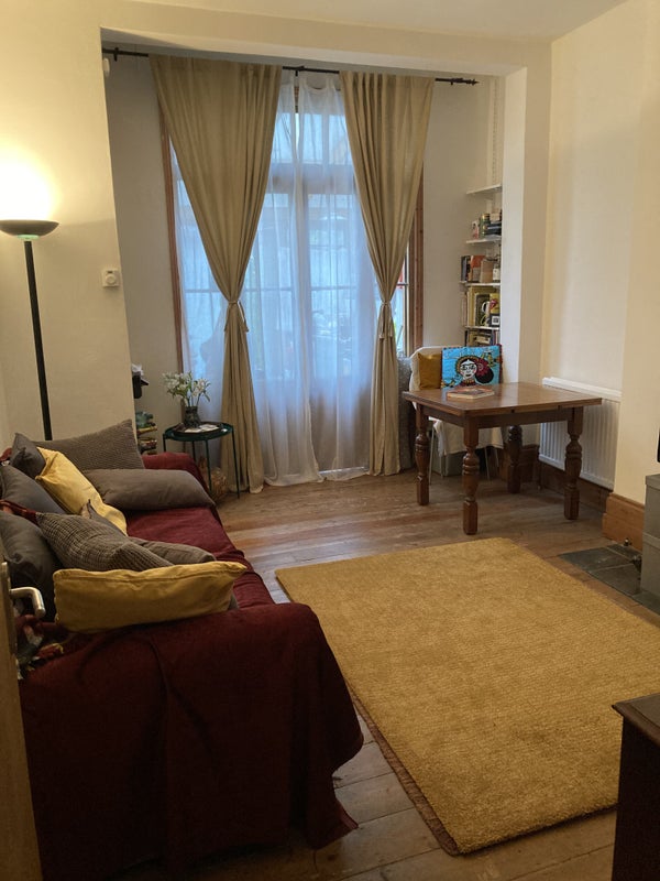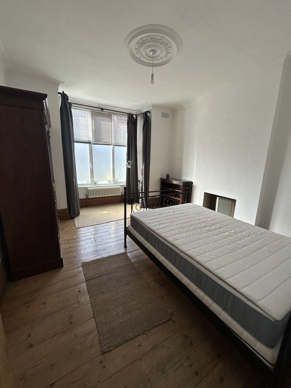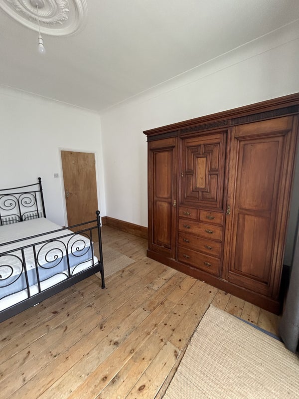 Large and bright room in lovely peaceful quite quirky 2 bedroom period garden flat property with own private bathroom. Both bedroom and bathroom are clean and tidy.