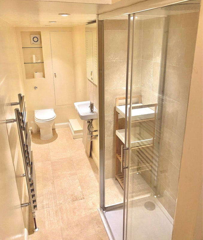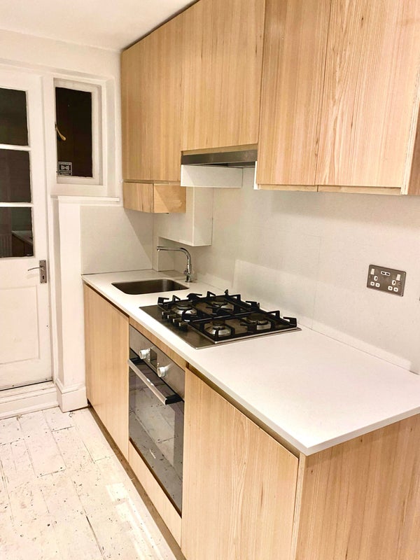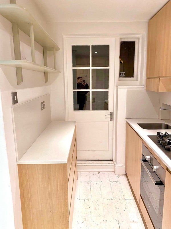 - Layout: The flat has two bedrooms, a spacious living room/dining area, a newly renovated kitchen, and bathroom. Plus a large cupboard for extra storage!