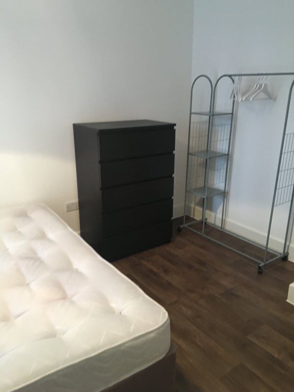 Bedroom fully furnished with new bed, large chest of drawers, large wardrobe, tv stand, sky box ready to plug into your tv. Close to all amenities, bus stop 2 mins away tube station 5 min away , Wi-Fi