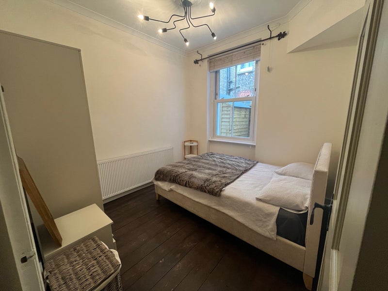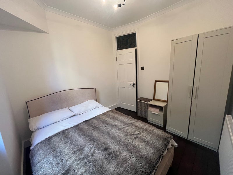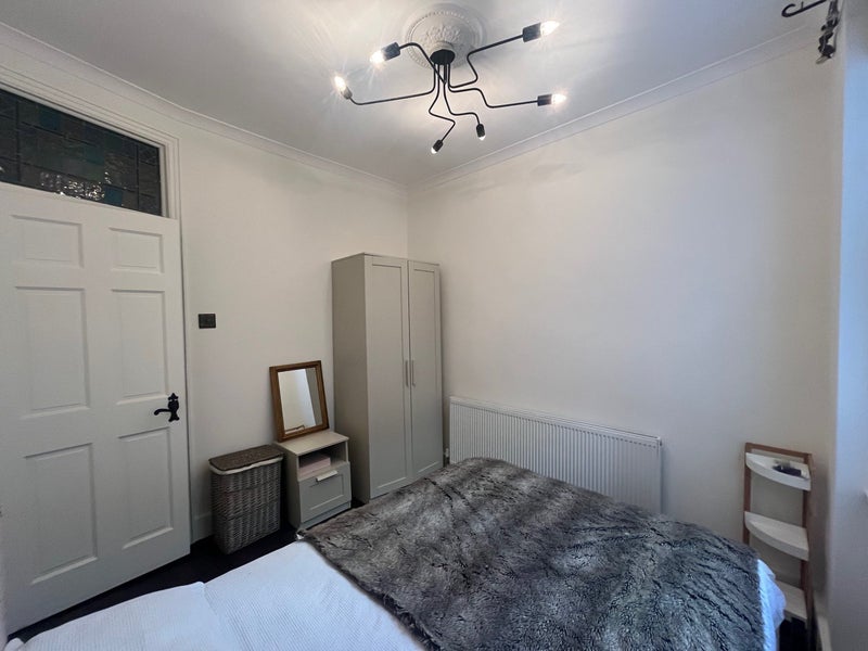 The available room is a furnished double bedroom, with wardrobe, bedside table, and optional additional storage in the hallway for coats and shoes.