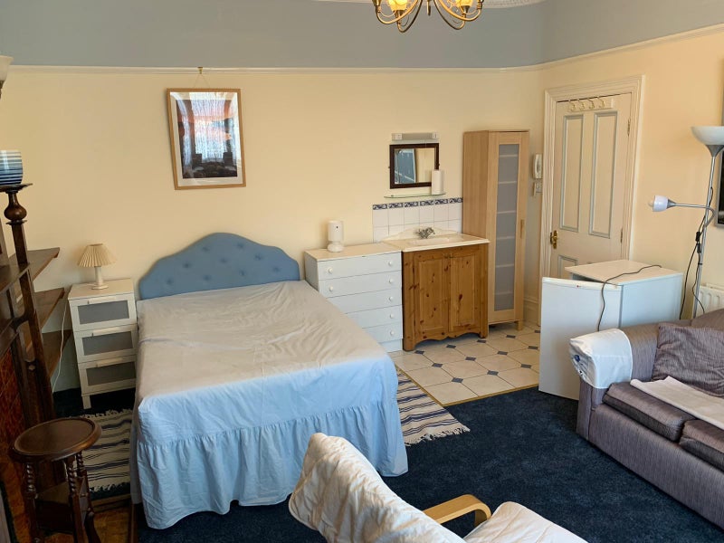 The studio is approx. 4.5m x 6.5m, making it noticeably larger than most studios in the area. While the room has a more traditional feel, it is well laid out, comfortable, and filled with natural light from large windows.