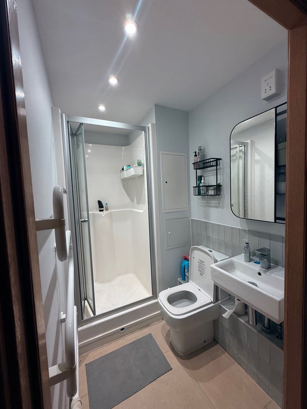 • Modern bathroom with shower cubicle