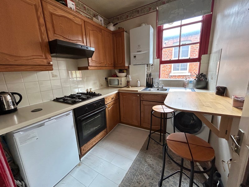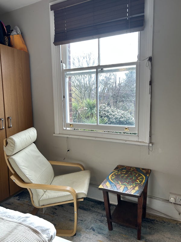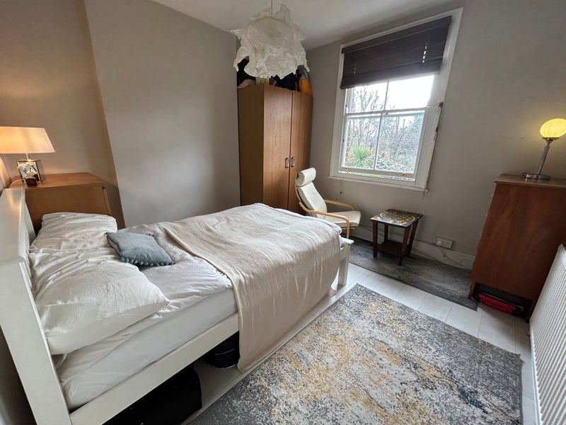 The space comprises of a double bedroom, kitchen and bathroom (these rooms are for your sole use, you do not share). The large bedroom is furnished and the kitchen is fully equipped, with washing machine, fridge, cooker, etc. The bathroom is large, modern and bright. Each room has plenty of natural light with the bedroom south facing onto the sunny back garden. Wooden floors throughout, a corridor leads between each of the three rooms.