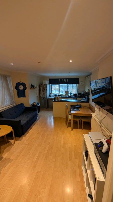 Double bedroom available until August in a cozy 2-bedroom flat. You'll be sharing an open-plan kitchen/living room and a bathroom with one other person.
