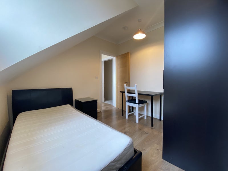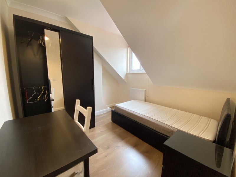 The room is nice and quiet and is in the loft. Quite a decent size for a small double room. It's got a large 1.2 meter wardrobe that boasts hanging and shelving space, a bedside and a single bed with ottoman storage underneath. On top of this there is a desk and chair which is important if you need to work from home.