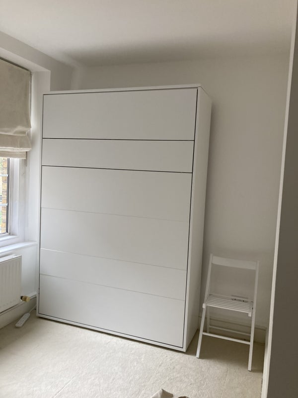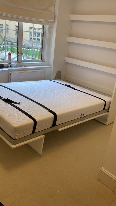 It is furnished with a wall double bed with fitted wardrobe with a lot of storage space.