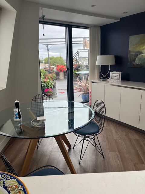 A large double bedroom with sole use of modern shower room.. Shared use of luxury kitchen/diner with all modern amenities, DW, Washing Machine, Microwave. Use of sitting room when I am away which is often.