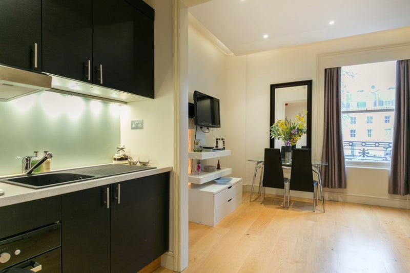 A serviced apartment within a two minute walk from Hyde Park and five from Notting Hill area. Weekly cleaning, gym, concierge services as well as all bills and fast wifi included in £340 pw.