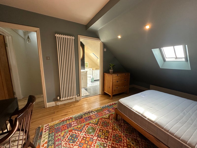 A beautiful, newly decorated and fully furnished double ensuite bedroom on the top floor of a three storey house.