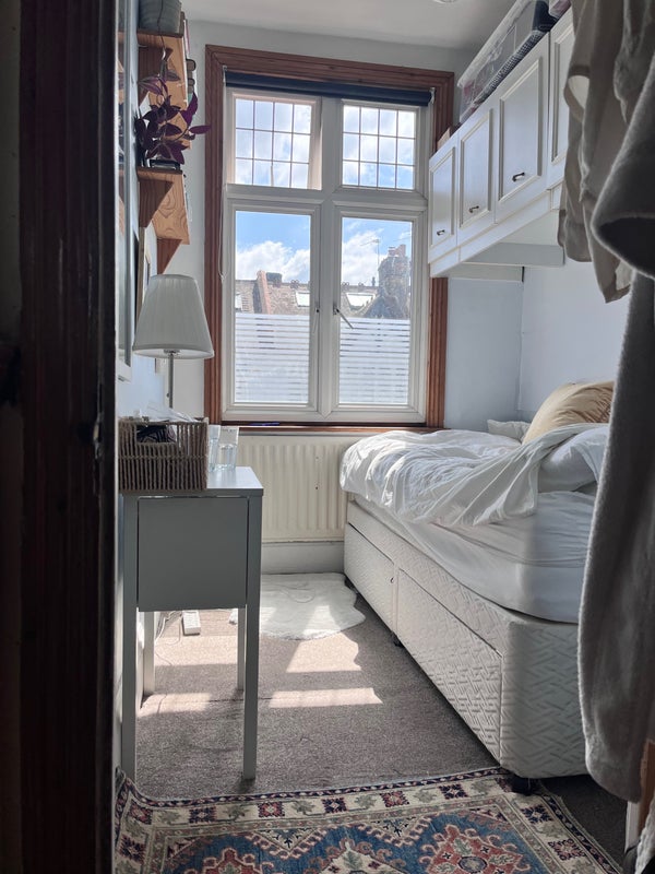 Room 1 - This is bright, cosy single room. It has plenty of storage and a built in wardrobes. The single bed was mine and its relatively new in great condition with storage underneath. There is no furniture included in this room other than the bed. The room is small, hence its price, so it would suit someone who isn’t in London often and needs a base, etc.