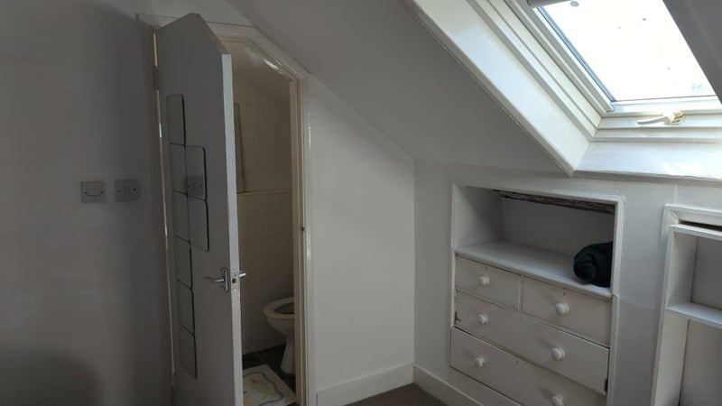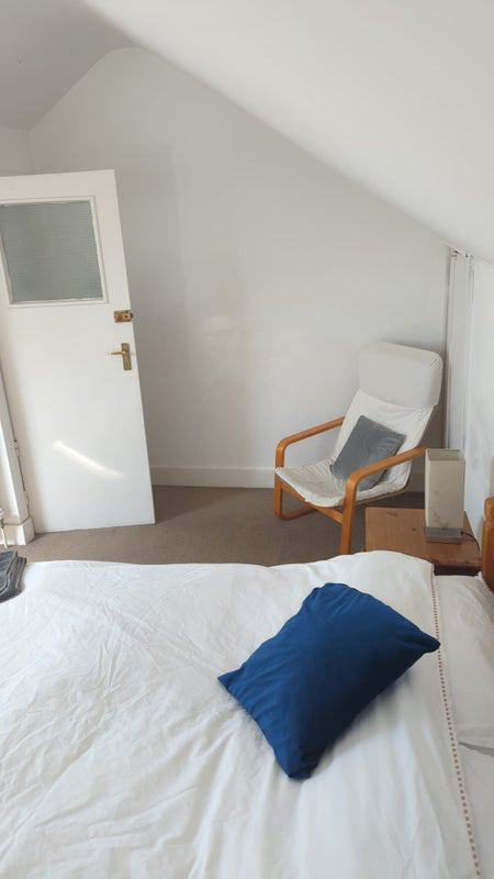 A bright and private en suite attic room is available in our spacious three-bedroom flat in Queen’s Park. The room comes fully furnished with a double bed, lounge chair, and private bathroom with shower and toilet – perfect for someone looking for a comfortable stay. (Note: the video shows a TV which is not part of the room).