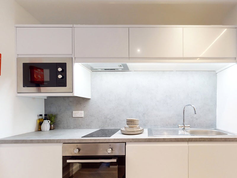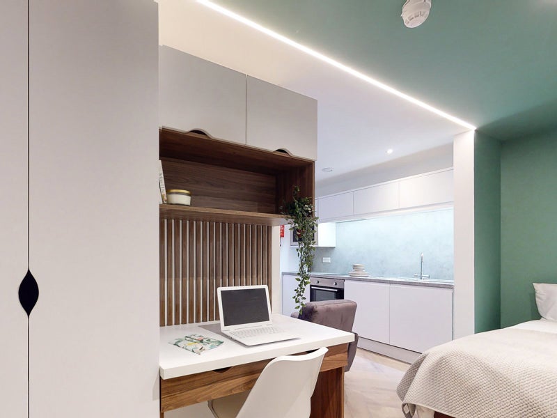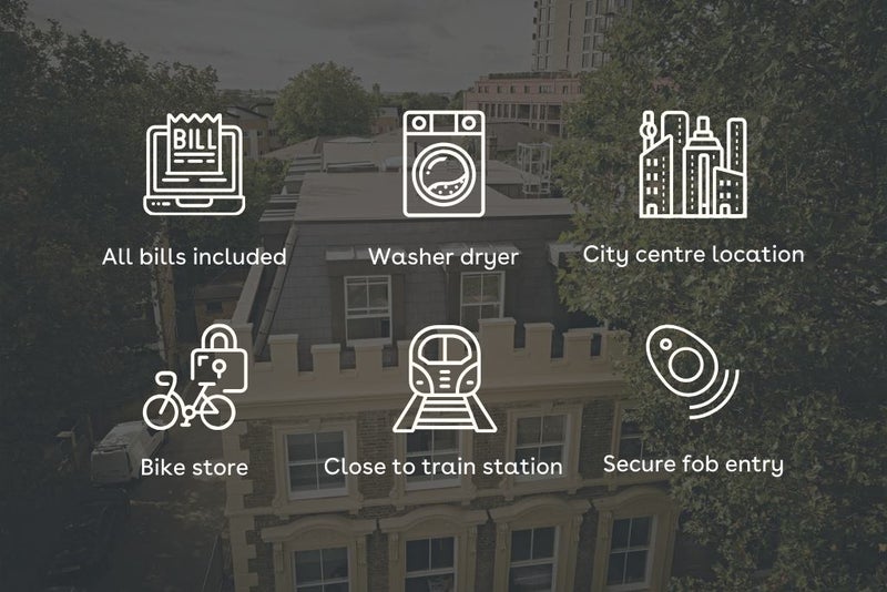 Discover a high-standard studio apartment, thoughtfully furnished with a bed, bedside table, study desk, chair, and a smart TV, creating a cosy and convenient living space. Benefit from ample storage with a wardrobe and under-bed drawers. Enjoy the luxury of an en-suite shower room and a well-equipped kitchen, featuring an oven, hob, microwave, and washer-dryer, all exclusively for your comfort. We also have an onsite bike store and a concierge service 1-2 days per week.