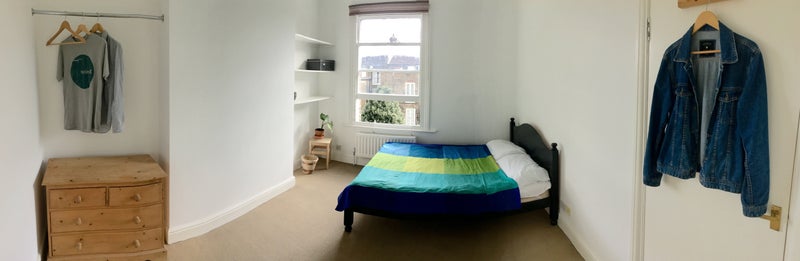 A big double room surrounded by a peaceful atmosphere. The flat is located in a vibrant area. 15 min walk to the center of Portobello Road, Queen´s Park is 10 min walking. All the amenities are close to the flat (Tesco, Iceland, M&S, Coop and a big Sainsbury's are all in the area, just a few minutes walking). Gym and swimming pool are just on the parallel road. There are 2 Bathrooms (the largest one with a window), kitchen (with 2 fridges, washing machine, dishes machine, oven, and microwave) huge living area with a sofa bed and a dinner table.