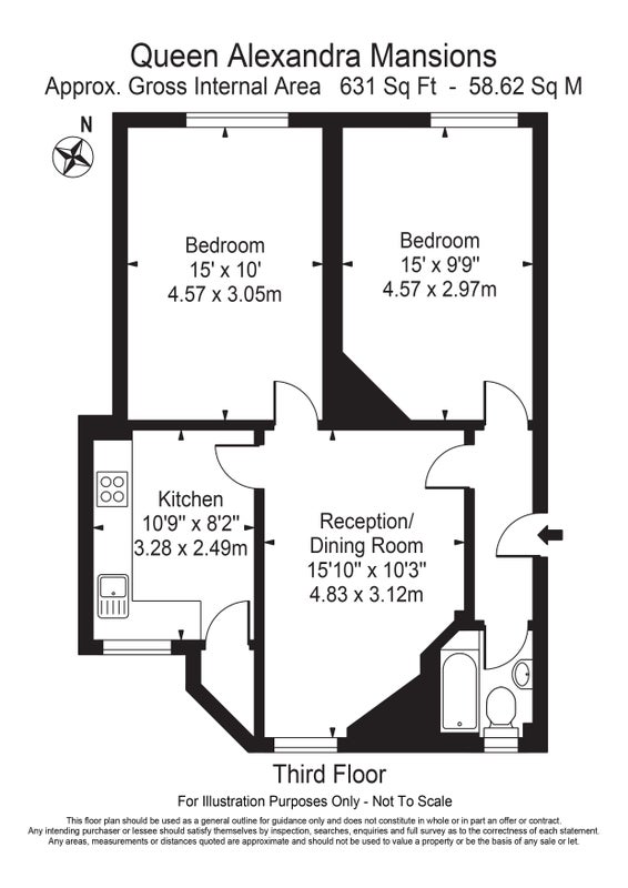 The apartment consists of 2 large double bedrooms, large sitting room/dining room overlooking the communal garden, separate well equipped kitchen, bathroom and entrance hallway. The building has a roof terrace and a secure bicycle lockup.