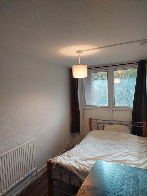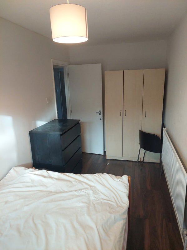 Double bedroom with chest of drawers and two wardrobes, space under the bed as well. The rent is 680 pounds, council tax, gas, and water bills included, and then approximately 40 pounds for wifi, electricity, and shared toiletries.