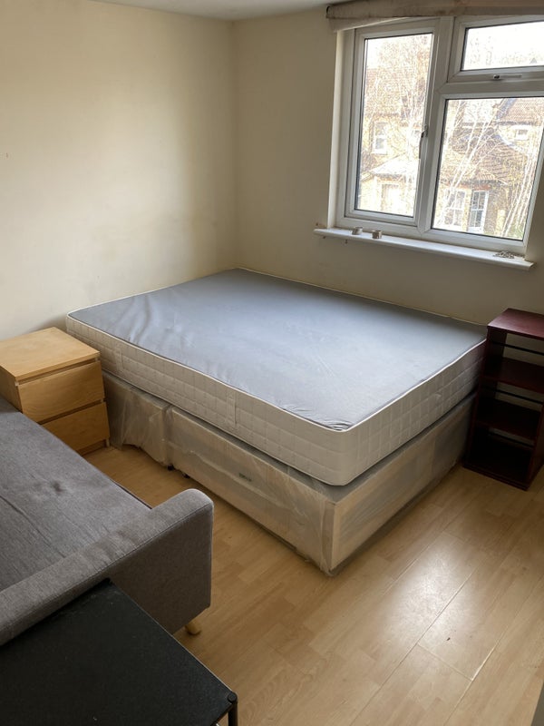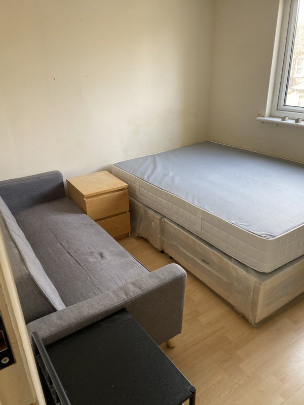 Bright small double bedroom within a 4 storey house with garden and shared living room whom each level with shower bathtub and separate toilet shared with other 5. It comes furnished as pic shows and double bed not shown in pic. Plenty of storage space in the basement. Looking for a full time professional who is keen to keep the house well maintained and tidy. Bedroom is on the third split level facing the back yard. You’ll be using the newly fitted bathroom with other 3. FEMALE preferred but not essential. No pets preferred. There is one lovely cat living in the house. Viewings starting 6th of March. Earliest move in date 15th of March. Bills and council tax come around £80/100 monthly all together. Get in touch if think you’ll be the right fit