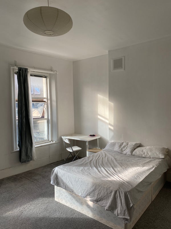 Genuinely huge room with loads of light. It has two sun-facing windows and comes furnished with a bed, a desk, a set of drawers, a wardrobe and a great sofa. The house has a huge terrace as well, where we spend most of the summer reading or sunbathing.