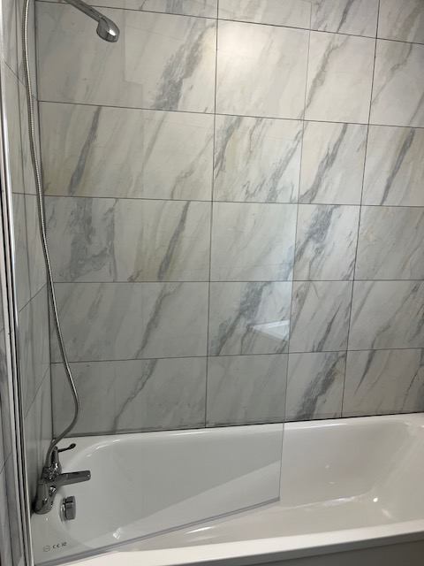 An all new fully tiled bathroom