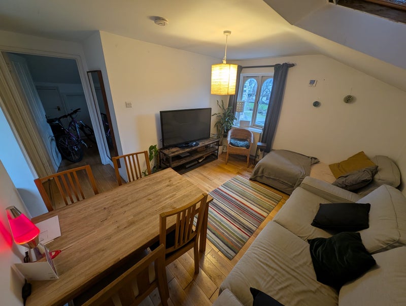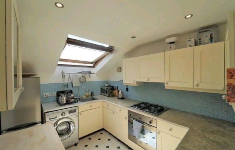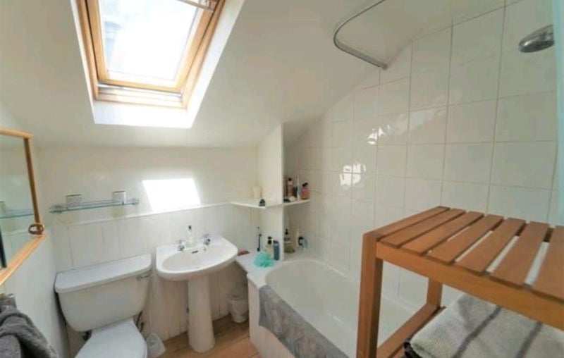 The flat itself is fully furnished and has a separate kitchen and living area, one shared bathroom, and lots of natural light thanks to the skylights throughout. It’s a really cosy, homely space in a brilliant part of London.