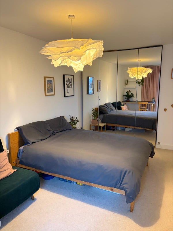 A bright, spacious and clean private room which includes a large double bed, desk and fitted wardrobes. The room has a south facing juliet balcony that opens onto the shared garden, the lake, and the city skyline in the distance. The view from the apartment is unbelievable. You will also have shared access to the rest of the apartment including a clean and tidy bathroom, a well equipped kitchen with a dishwasher, a calm and relaxing living room and a serene balcony overlooking the garden, lake and skyline. Bills are included in the price and a cleaner comes every 2 weeks.