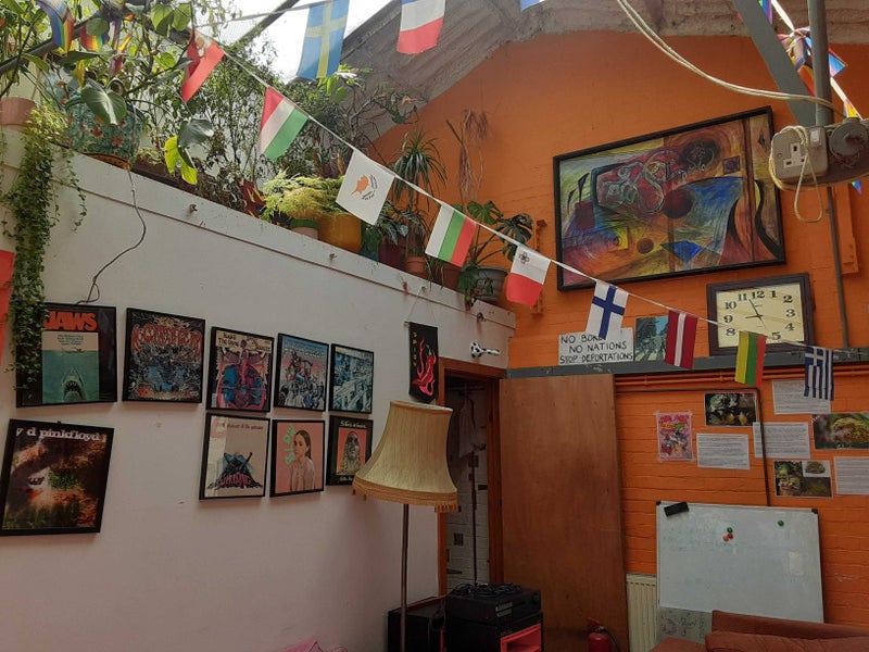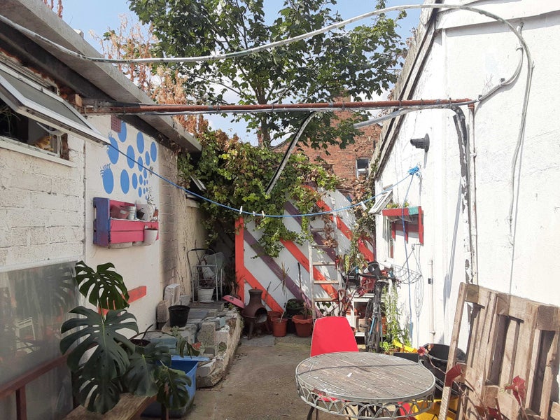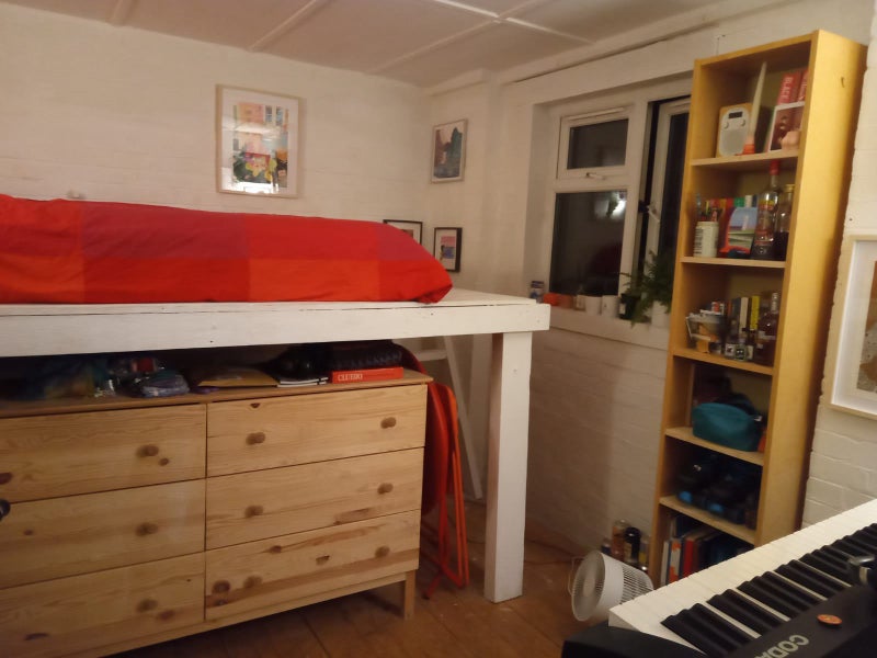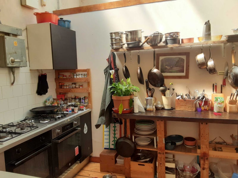 The main space is great for house dinners, art projects, having friends over, post-party debriefing, hosting events, etc. We also have a public mezzanine/cosy second living room with a tv and sofas. We have two bathrooms w/ showers and the usual amenities, and a little back garden where we can barbecue in the summer (as well as a larger courtyard we share with our neighbors).