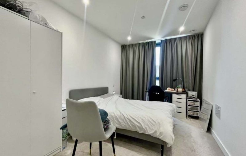 The room comes fully furnished with a bed, desk, chair, and storage space, making it suitable for both studying and daily living. The flat includes a shared kitchen, and the environment is quiet and respectful.