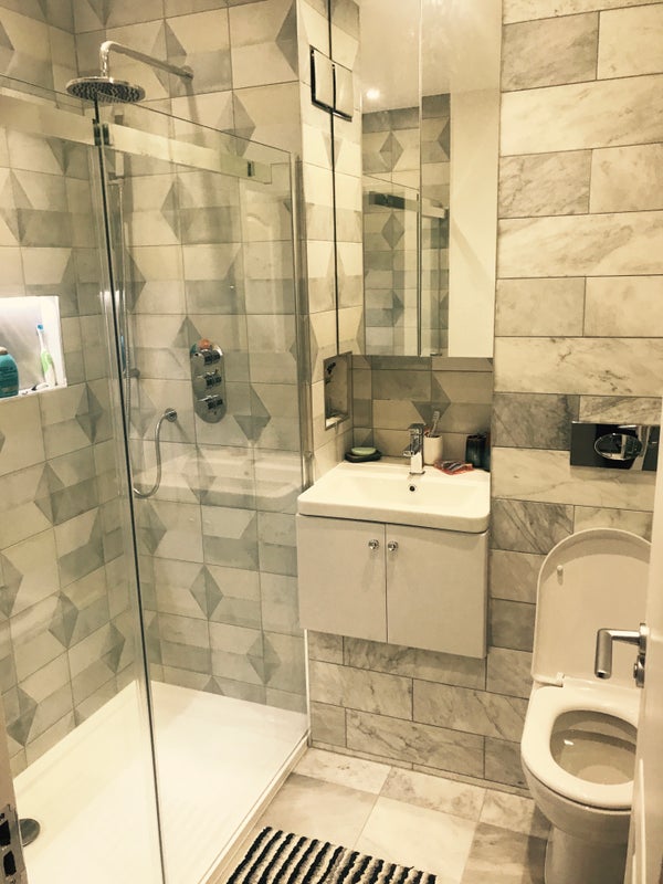 It also includes a large in-built wall-mounted flat-screen TV, giving it a hotel-style feel. The room has a quiet aspect, so it feels calm and private despite being in such a central location.