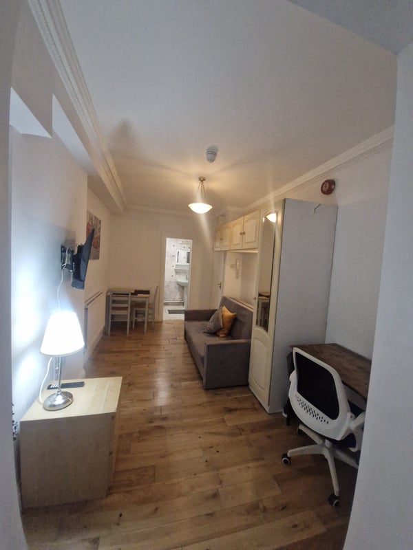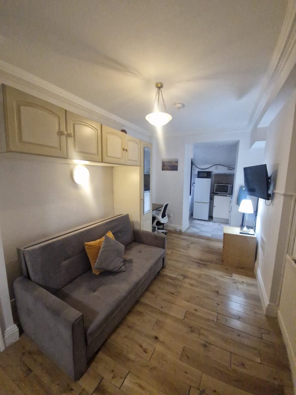 The studio features a compact yet fully functional kitchen with essential appliances, a modern bathroom, and a comfortable sofa bed. While cosy in size, the space is thoughtfully arranged to provide everything needed for a convenient and comfortable stay.