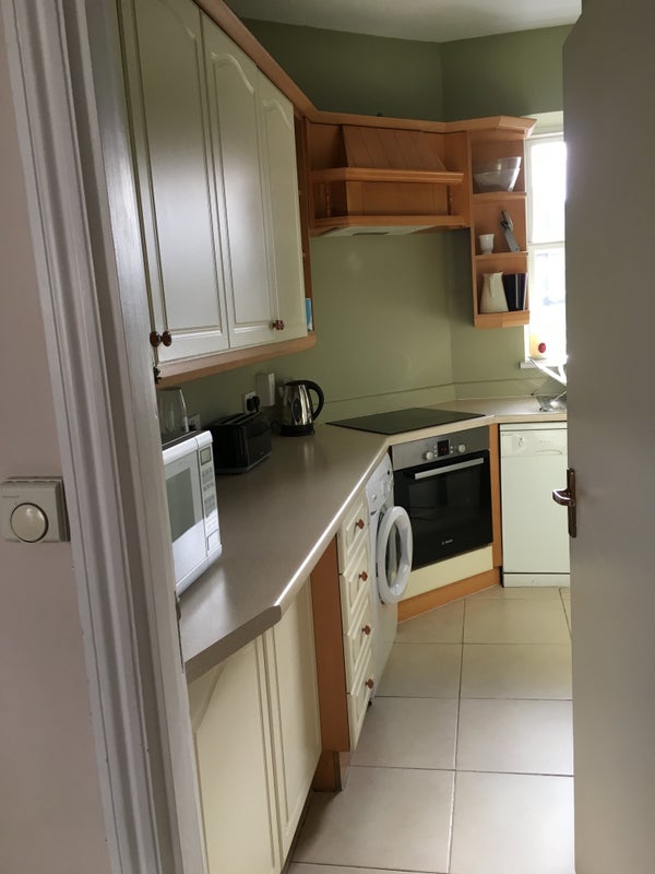 Shared kitchen fully equipped with washing machine, microwave oven, fridge and freezer. Shared bathroom. Cleaner cleans common parts once a week.
