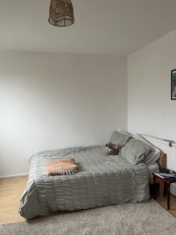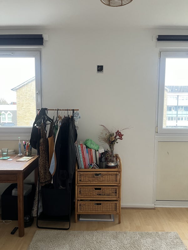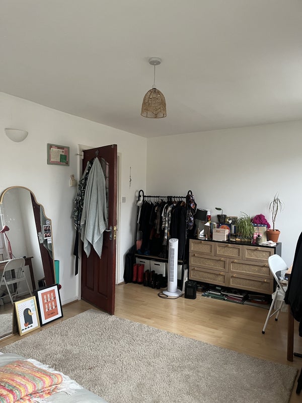 The room is massive! Double bed, large desk, lots of floor space. The rest of the flat is super cosy, a proper girls flat, with THE BEST housemates. We have a kitchen/living area, down stairs loo, upstairs bathroom. My bedroom is on the same floor as the kitchen and the other bedrooms are upstairs with the main bathroom.