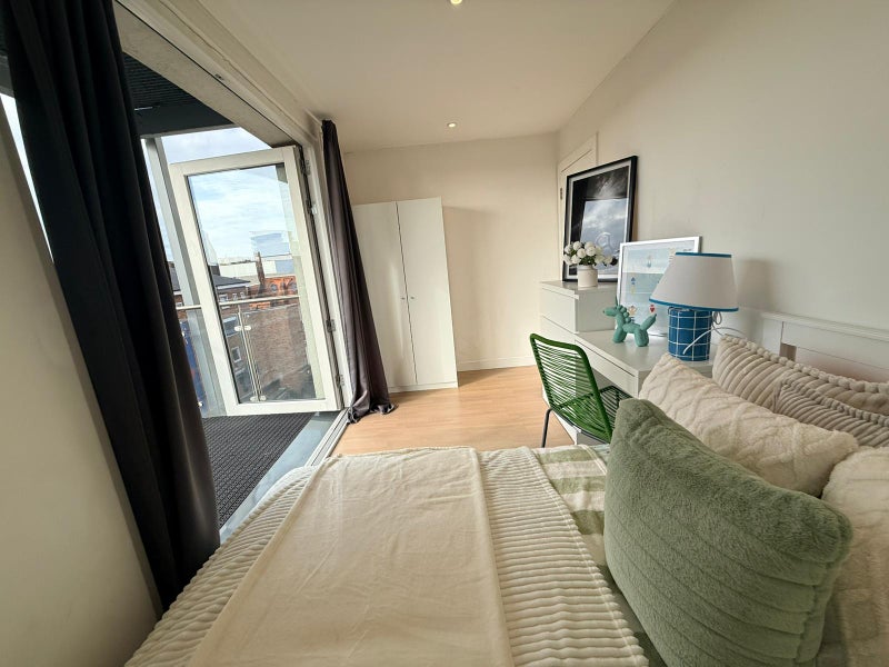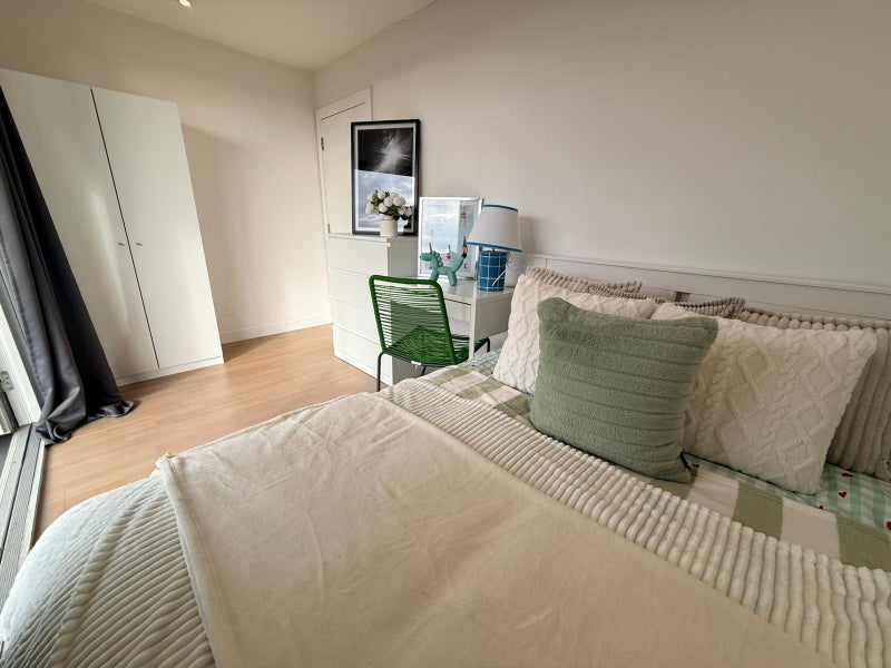 A well-sized and bright double room in a professionally managed 5-bedroom, 3-bathroom apartment — ideal for professionals who want minimal bathroom sharing and a well-organised household.