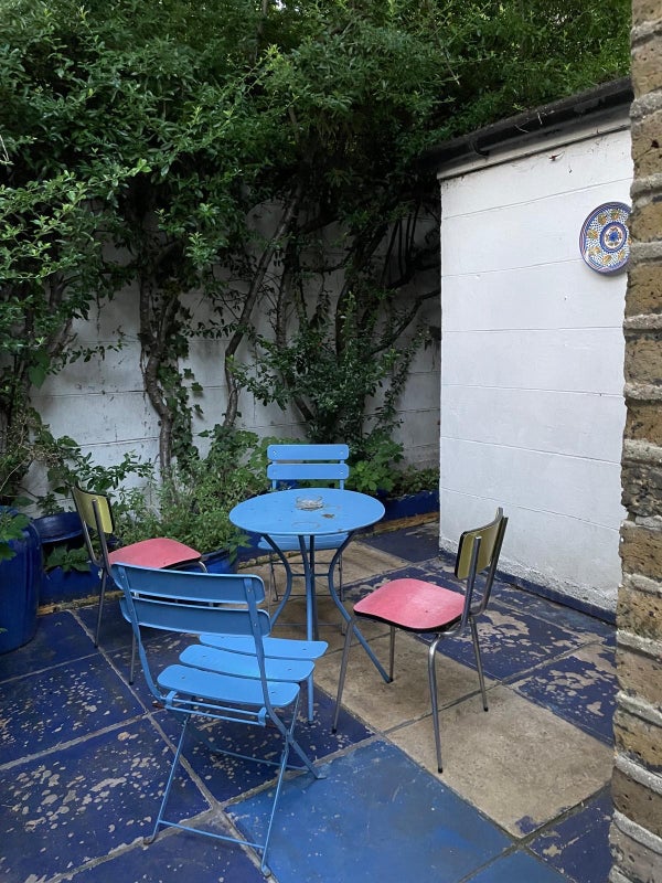 - Pretty outdoor patio space, with chairs and table, perfect for summer!