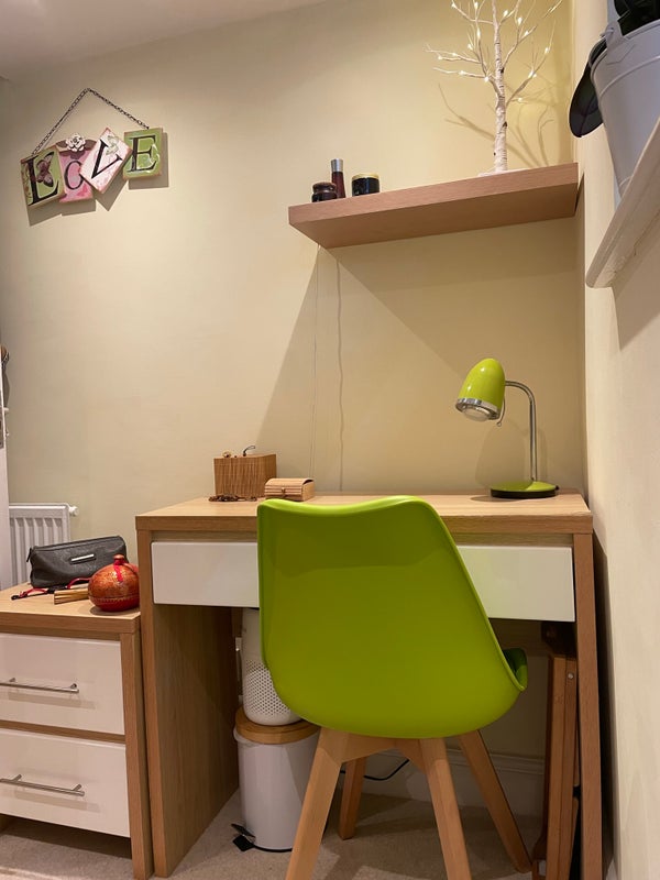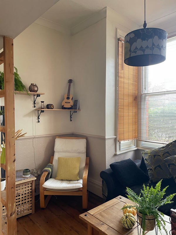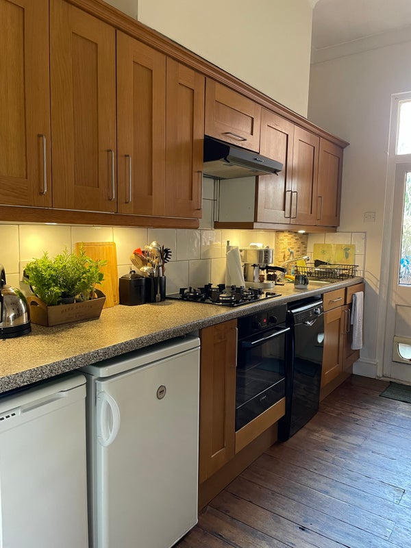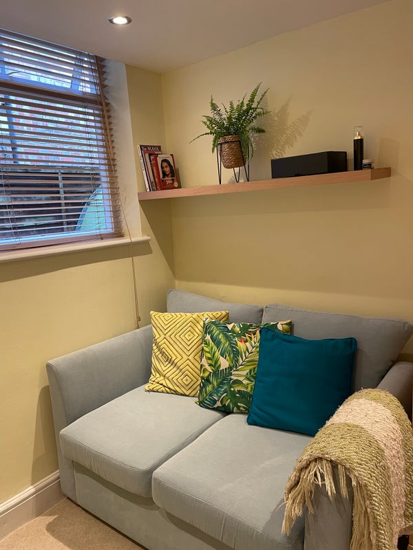 The flat can easily accommodate 2 with a separate room for each, or a couple. The living room is large and spacious with a south facing window so you will get plenty of light. There is a comfy 3 seat sofa and an armchair + a desk space, a mid size wardrobe under the bed. You'll have access to my smart Samsung TV.