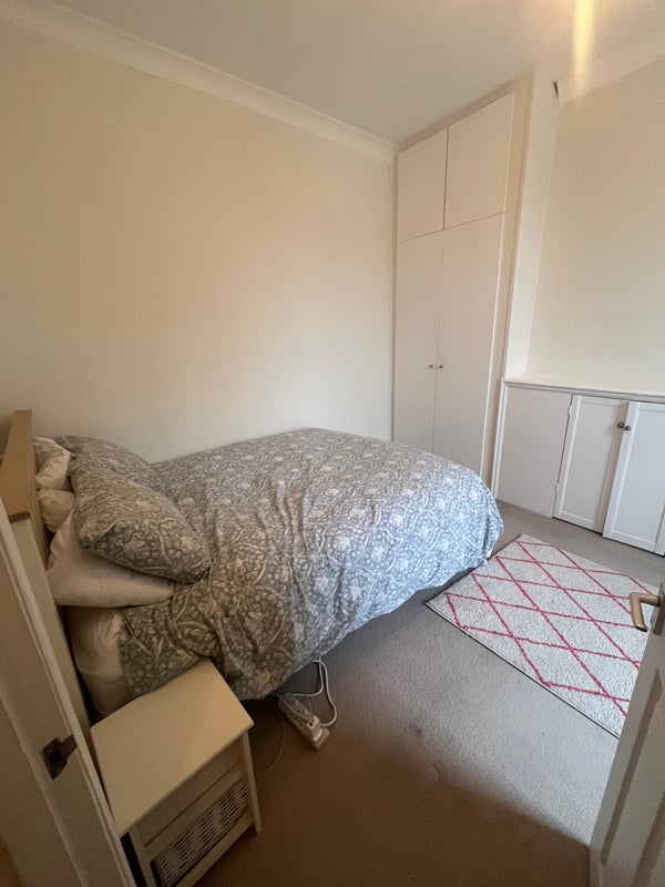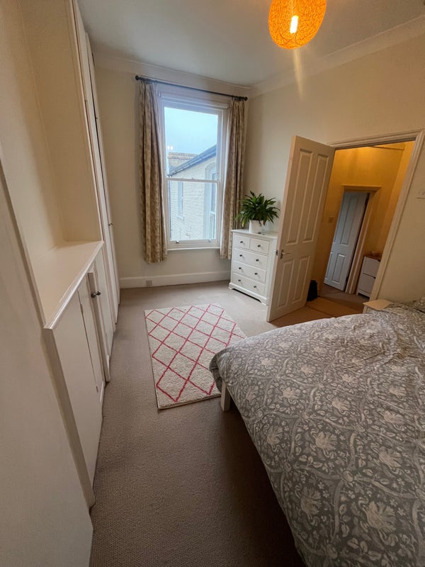 The bedroom itself is a good-sized double with lots of storage, and you’ll share one bathroom with me.