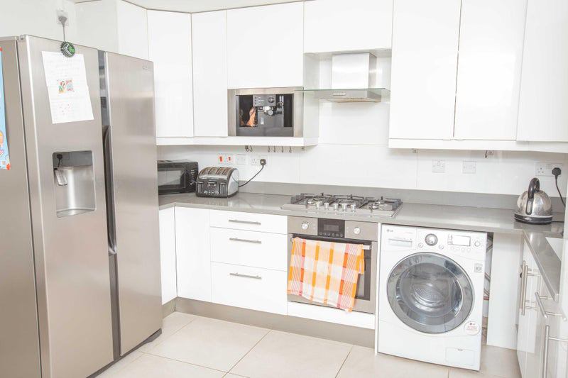 Modern open-plan kitchen with all appliances