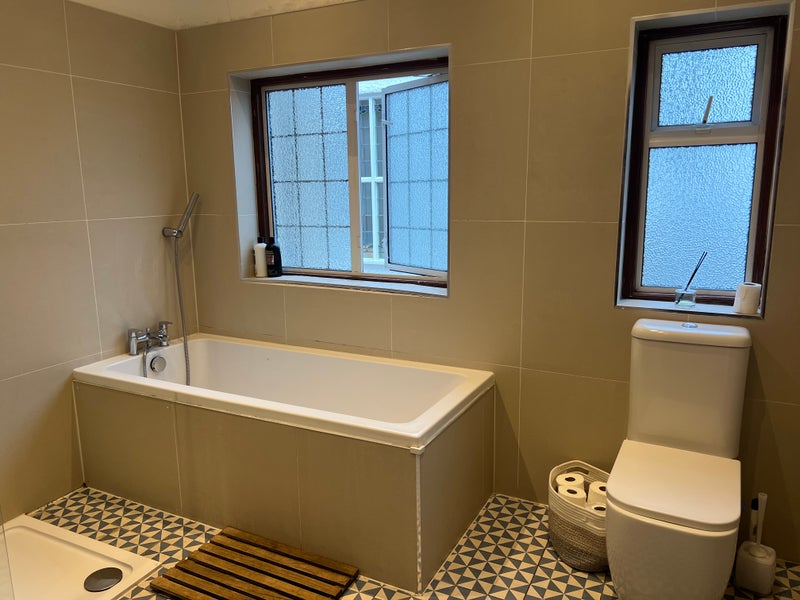 There are three bathrooms in the house (though the room does not feature an en suite - the lodger has easy access to a brand new large bathroom).