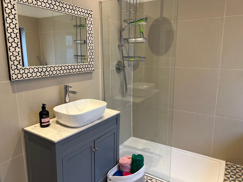 There is a brand new nearby bathroom (pictured) which features a good-sized bath and large walk in shower.