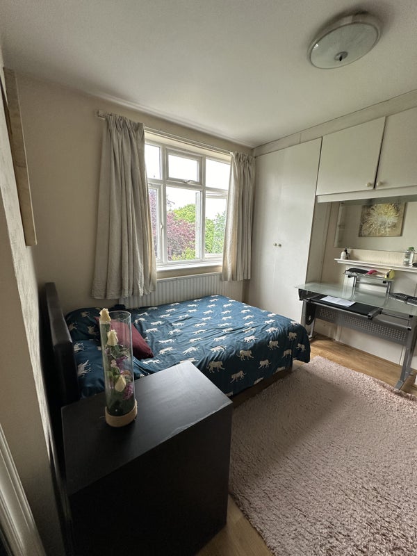 I am letting a big double size bedroom including a full size desk and a 3 seater settee with full wall wardrobes across the room as seen in the images.