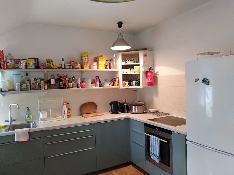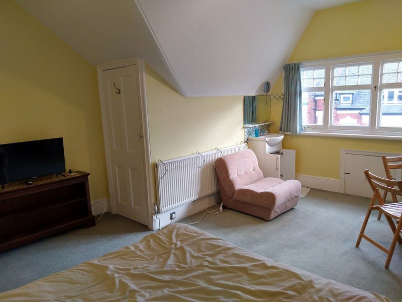 The Homesharer will have a large double bedroom with double bed, sink in bedroom, a storage cupboard, dresser with drawers, street facing room. Desk/table and chair provided.